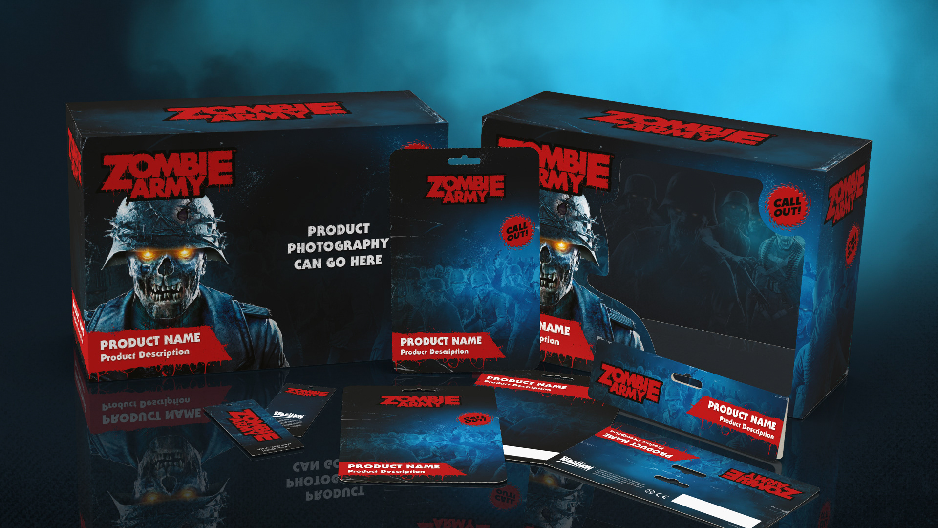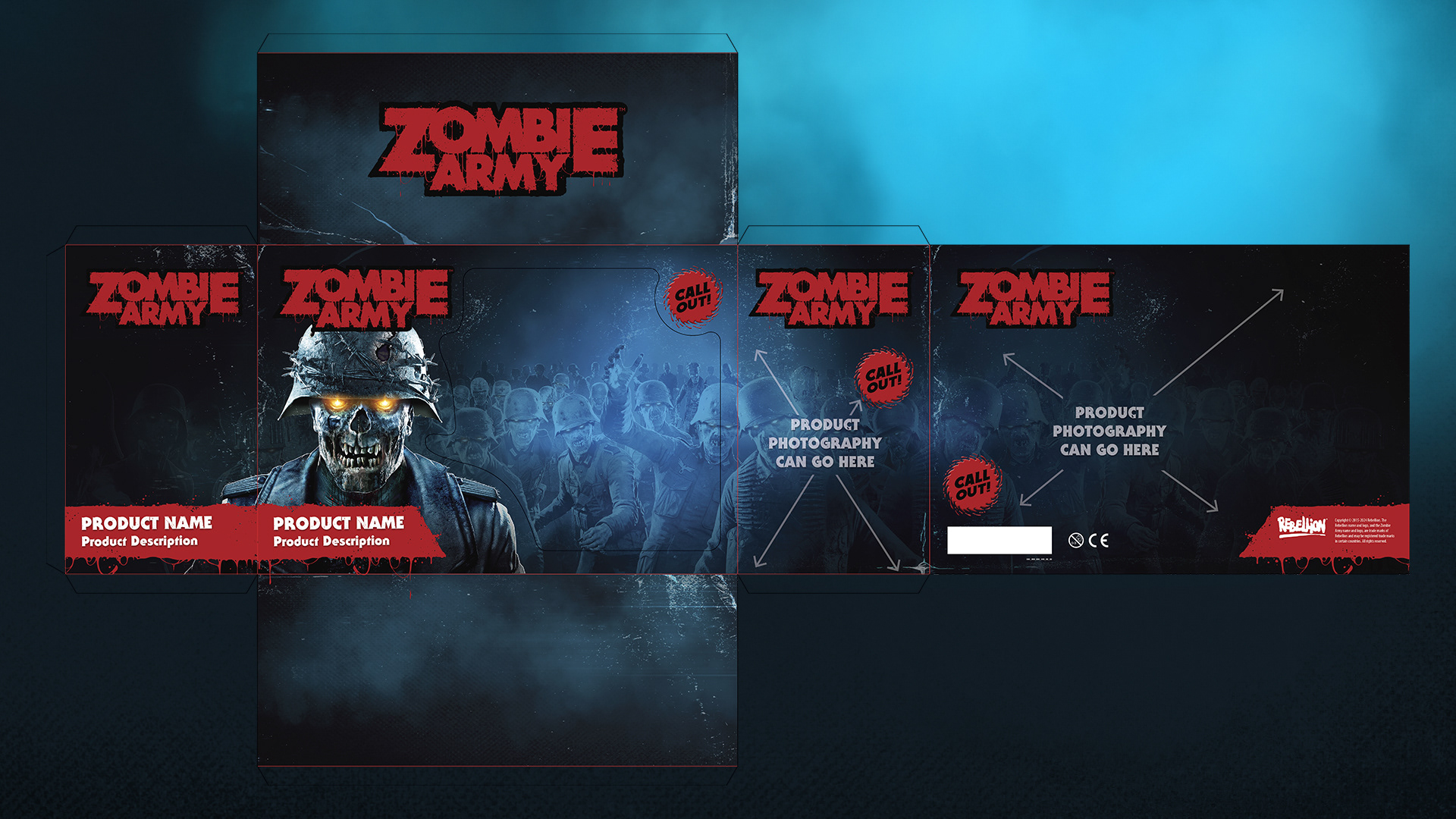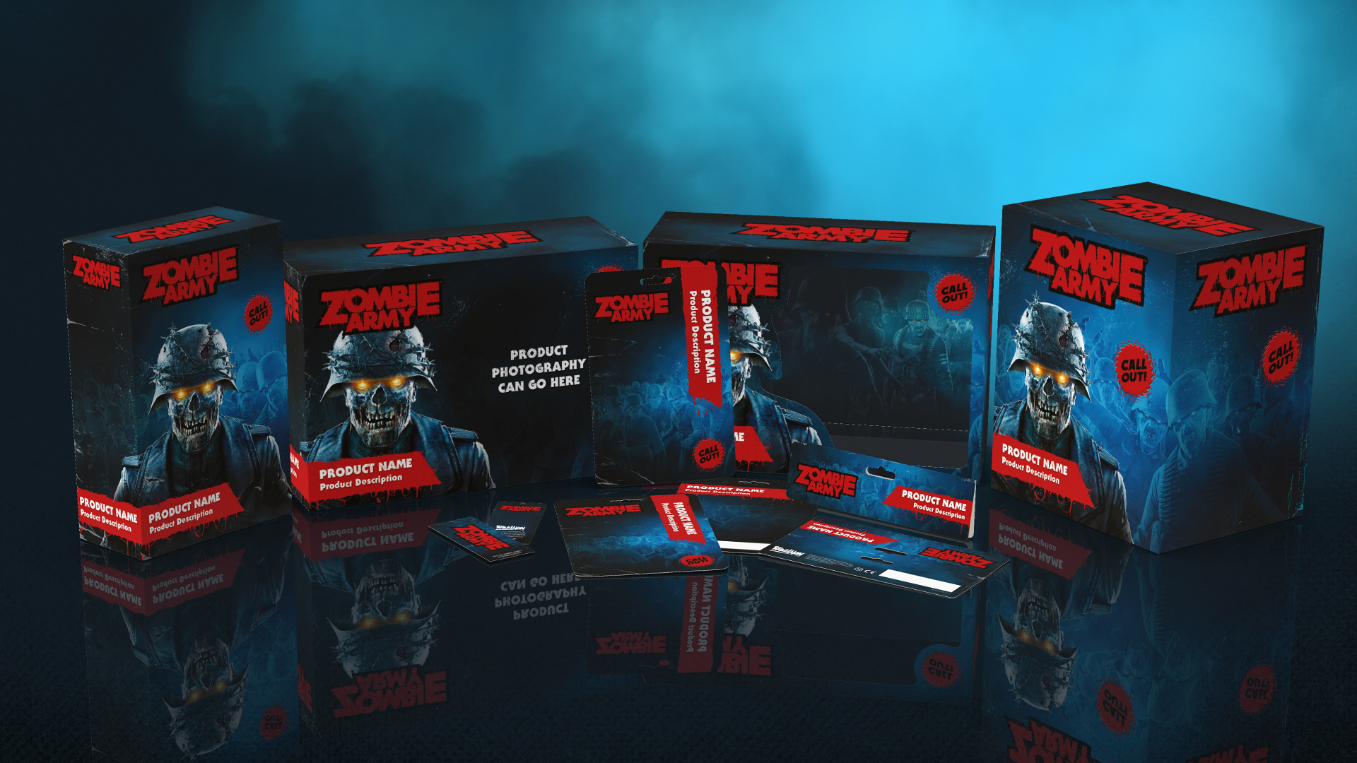 Packaging design for the Zombie Army style guide.